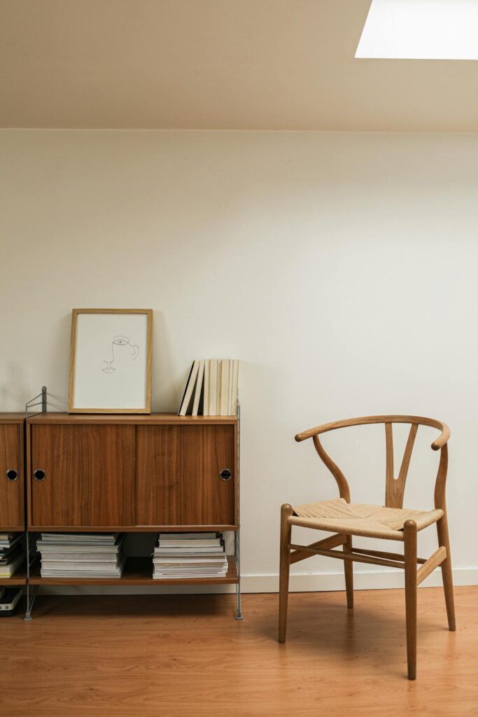 This vignette captures the very essence of high-end minimalist furniture: form over function, always and forever. The chair is undeniable beautiful, sculptural, and constructed from high-quality timber. It is also likely painful to sit on for any duration longer than ten minutes. But comfort is a bourgeois concept for people who own recliners.