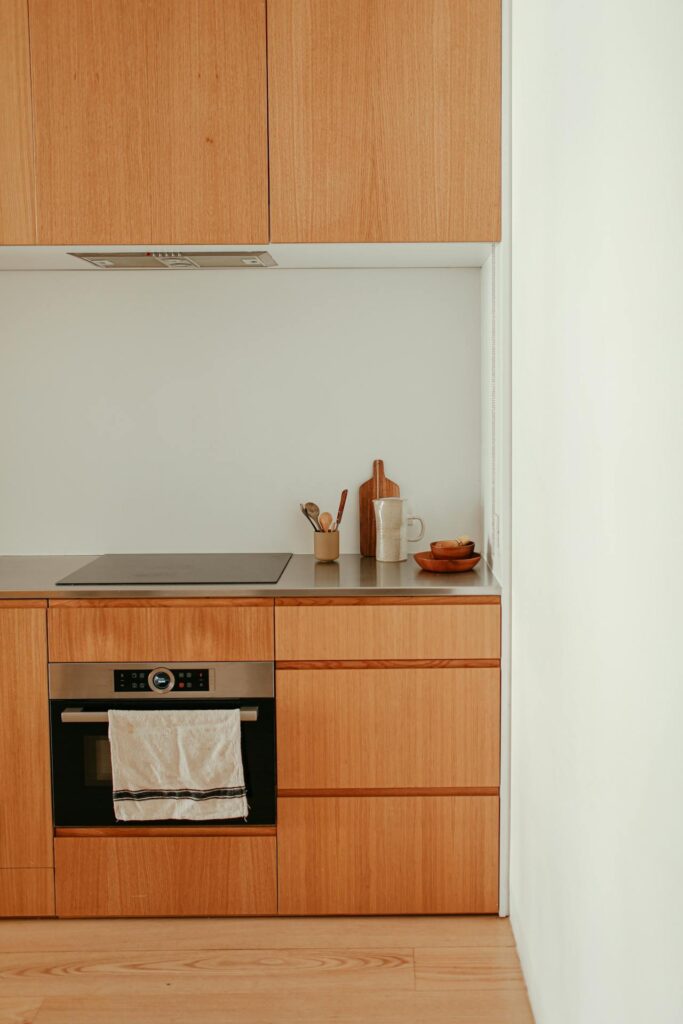 Wood textures are theoretically supposed to bring warmth and organic life to a room, but in this minimalist kitchen, the dark timber feels as welcoming as the inside of a cigar box—or a coffin. The clean lines and complete absence of countertop appliances suggest that cooking here is highly discouraged. Where is the toaster? Where is the coffee maker? Where are the crumbs of toast that prove a human lives here?